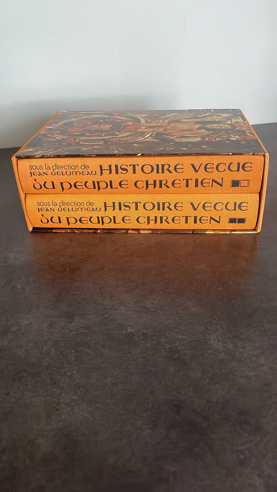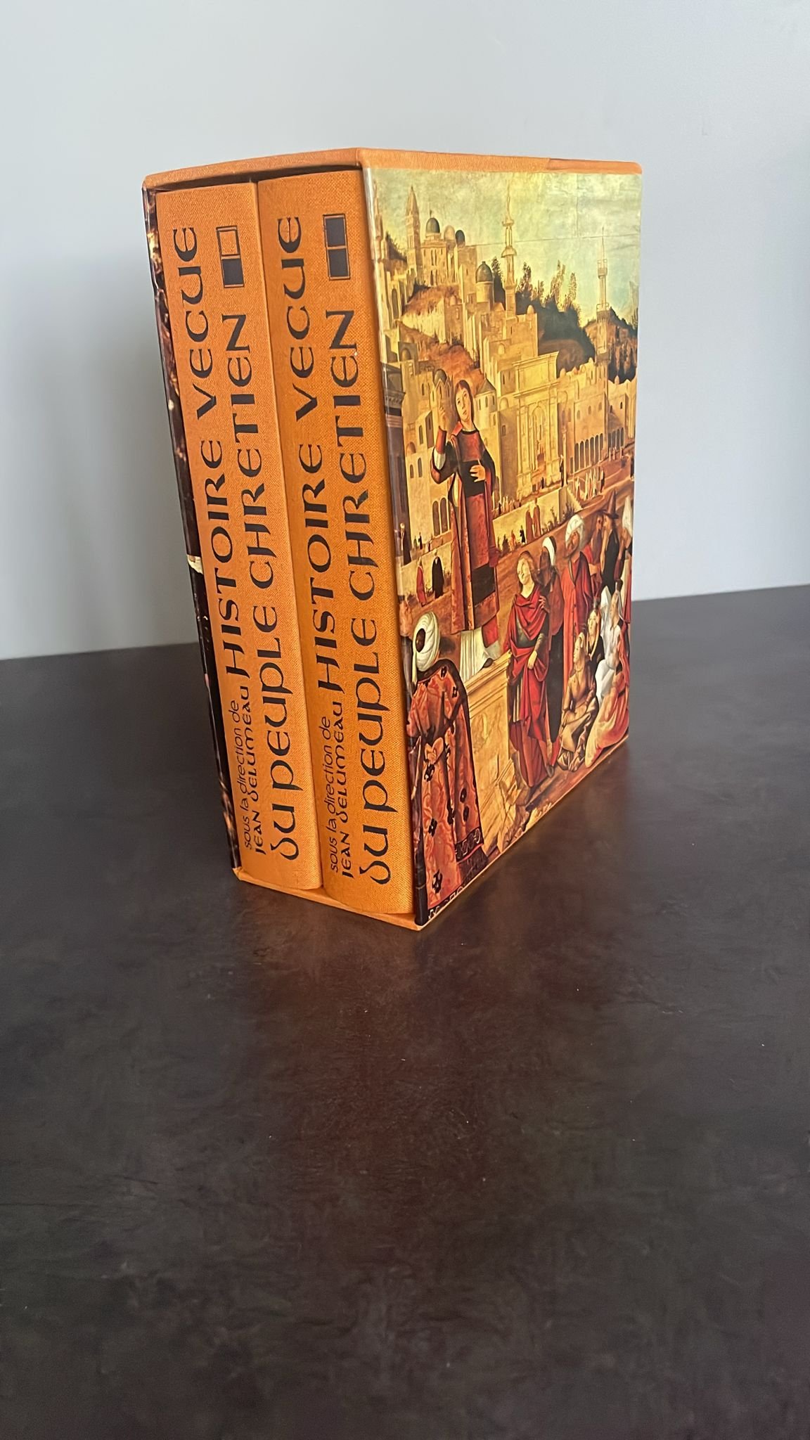 HISTOIRE VÉCUE du PEUPLE CHRÉTIEN sous la direction de Jean DELUMEAU ouvrage en deux volumes reliés (18 cm x 23.55 cm) couverture cartonnée, pleine toile ocre, illustrée en couleurs, titre, auteur en noir sur les premiers plats et aux dos, sous emboîtage cartonné, illustré, 461 et 481 pages, illustrées de figures, plans, cartes, noir et blanc, et couleurs, dans et hors-texte. Ouvrage tiré à 6000 exemplaires sur vélin spécial Estérel, constituant l’édition Originale, celui-ci porte le n°4355 Sur 6000